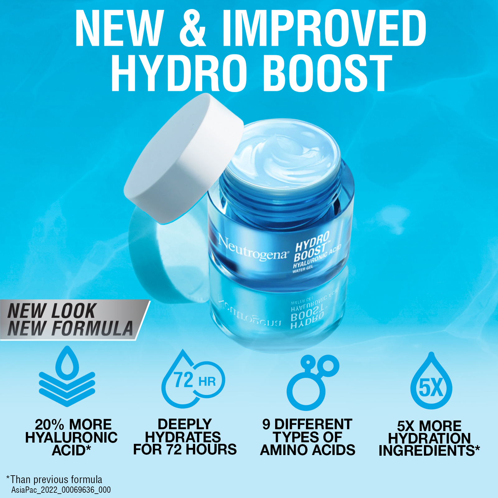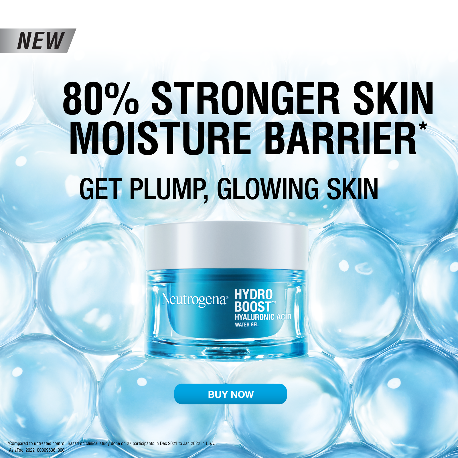 Neutrogena® Hydro BoostTM Hyaluronic Acid Water Gel is an ultra-refreshing and light-weight water gel, supercharged with Natural Moisturizing Factors to help strengthen the skin barrier to help maintain skin vitality for visibly plump, supple and glowing skin. The water gel delivers 5x more hydration* for an 80% stronger skin moisture barrier.