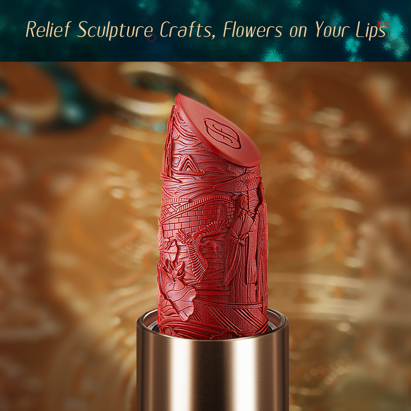 2. Craftsmanship: it combines millennial miniature relief craftsmanship in China with modern technology. The lipstick body is engraved with “Zhang Chang’s Drawing His Wife’s Eyebrows”, a famous love story in the Han Dynasty.