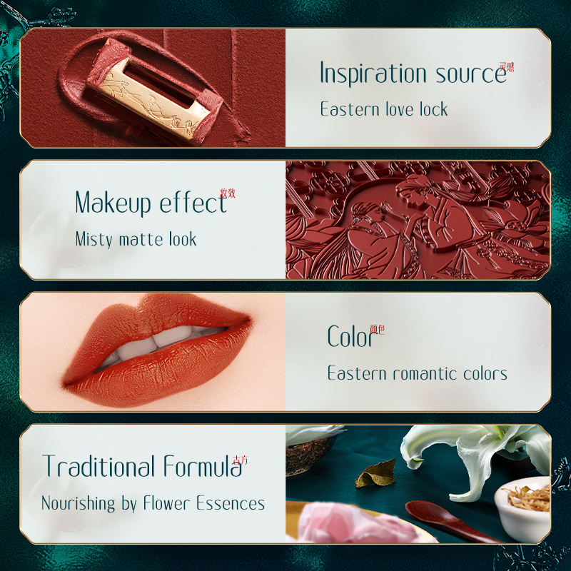 1. Inspiration: Concentric lock is a traditional token of love. At Florasis, we worked with locksmiths versed in the ancient traditions of this craft to present to you this unique love lock lipstick that exudes Eastern romance.